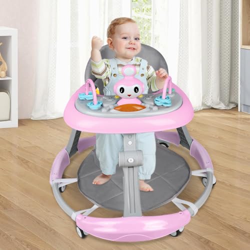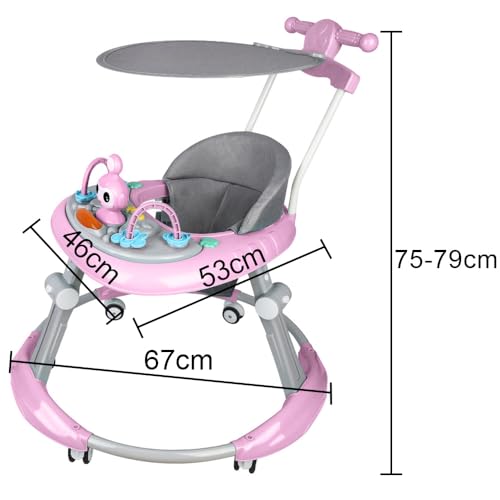 2-in-1 Lauflernhilfe für Babys mit 5 verstellbaren Höhen, Lauflernhilfe für Babys, faltbar, mit abnehmbarem musikalischem Aktivitätentablett, von 6 bis 18 Monaten, bis zu 12 kg (67 x 67 x 79 cm, Rosa)