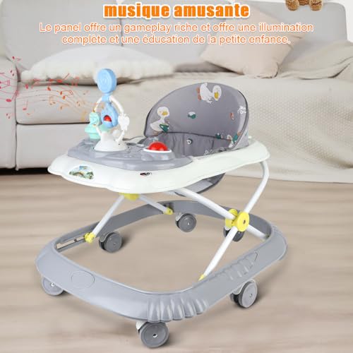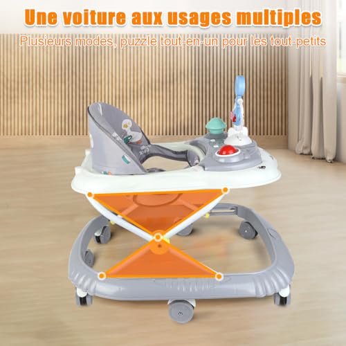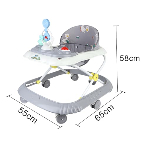 4 in 1 Drehspieß mit Tablett für musikalische Aktivitäten, 4 einstellbare Höhen, zusammenklappbarer Lauflernhilfe für Babys von 6 bis 18 Monaten, bis zu 9 kg (grau, 58 x 55 x 65 cm)