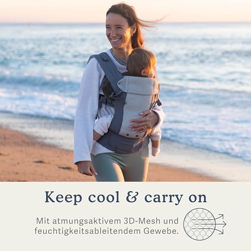 Von Geburt bis Kleinkind – Diese leichte und weiche Babytrage verfügt über einen verstellbaren Sitz, eine integrierte Kopfstütze, eine Knie-zu-Knie-Stütze und gepolsterte Beinausschnitte für ganztägigen Komfort. Das 3D-Mesh-Panel sorgt für zusätzliche Atmungsaktivität.