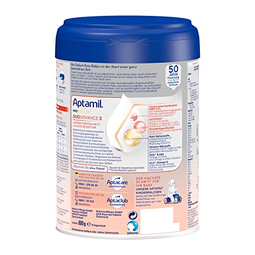 Die Geburt Ihres Babys ist der Start einer ganz besonderen Zeit. Dieser neue Abschnitt ist wunderschön, manchmal aber auch turbulent und – vor allem – voller Leben! Auf einmal ist so vieles zu beachten und hierbei wollen wir an Ihrer Seite sein. Seit über 40 Jahren forschen wir an den wundervollen Eigenschaften von Muttermilch und ihrem inneren Plan, das Kind zu nähren, zu entwickeln und das Immunsystem zu unterstützen, um es bestmöglich auf die Zukunft vorzubereiten. Dieses Wissen unserer wegweisenden Forschungsarbeit steckt in unserer patentierten Formel. Aptamil PROFUTURA DUOAdvance 2 UNSERE FORTSCHRITTLICHSTE REZEPTUR Basierend auf unseren neuesten Forschungsergebnissen zu Muttermilch und frühkindlicher Ernährung hat unser Team aus Wissenschaftlern & Immunologie-Spezialisten unsere fortschrittlichste Folgemilch entwickelt. Ihre einzigartige Zusammensetzung macht sie zu unserer innovativsten Rezeptur. Begleitend zur Beikost ist sie geeignet in Kombination mit Muttermilch oder auch für die Zeit nach dem Stillen. Unsere beste Kombination: HMO 2’FL: Ein Humanes Milch-Oligosaccharid, welches natürlicherweise in Muttermilch vorkommt***. Lactofidus Unser schonender Prozess, in welchem L-Laktat sowie auch HMO 3’GL entsteht. Hochwertiges Milchfett sorgt auch für einen angenehmen Geschmack. Nutri-Ballaststoffe Unsere besondere 9:1 Oligosaccharid-Mischung GOS/FOS. Immuno-Nährstoffe Vitamine C & D** tragen zu einem gesunden Immunsystem bei. DHA** & ARA Omega-3 (DHA) und Omega-6 (ARA) Fettsäuren. ALA** (Omega-3) unterstützt die normale Gehirn- und Nervenzellenentwicklung. Pflanzliche Öle ohne Palmöl **gesetzlich für Folgenahrung vorgeschrieben ***Nicht aus Muttermilch gewonnen