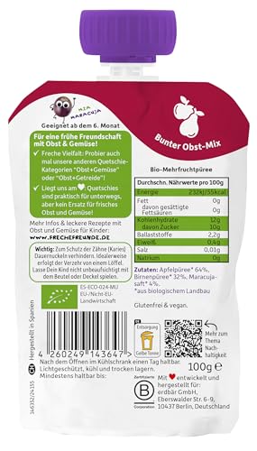 Be the first to review “FRECHE FREUNDE Bio Quetschie Apfel, Birne & Maracuja, Fruchtmus mit Obst im Quetschbeutel für Babys ab dem 6. Monat, vegan, 6er Pack (6 x 100g)”