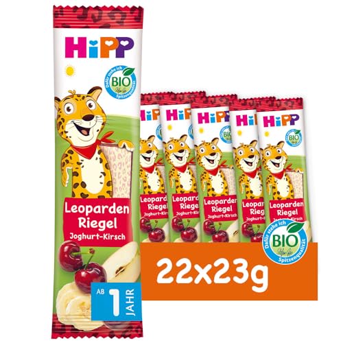 HiPP Leoparden Riegel Joghurt-Kirsch in Banane (22 x 23g), ab 1 Jahr, Süße nur aus Früchten, in bester Bio-Qualität