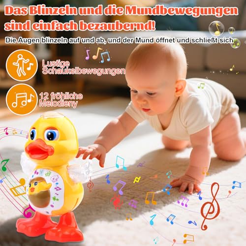 【Fördert aktives und soziales Spielen】Die energischen Bewegungen der Ente inspirieren Kinder zum Tanzen, Springen und Trainieren und fördern so körperliche Aktivität. Tanzende singender krabbel fördert auch die soziale Interaktion, da Kleinkinder gemeinsam mit Geschwistern, Freunden oder Eltern tanzen und so freudige Momente der Verbundenheit erleben können
