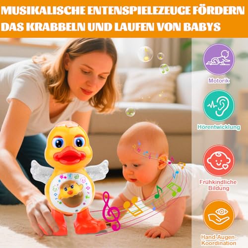 【Lernfördernd und entwicklungsfördernd】Durch die kleinkinder lernspielzeug von Musik und Bewegung fördert dieses Spielzeug Koordination, Motorik und sensorische Entwicklung. Ente musik kinderspielzeug fördert außerdem frühes Lernen durch Geräuscherkennung und interaktives Spielen und fördert so Kreativität und Engagement