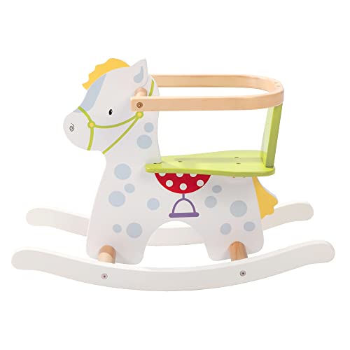 Kinder lieben es zu schaukeln! Mit diesem liebevoll bedruckten Schaukelpferd fördern Sie die Motorik, den Gleichgewichtssinn und die Aktivität Ihres Kindes. Das Schaukeltier mit sicherem Schaukelstuhl und Rücken- und Armlehne ist für Babys ab 12 Monate geeignet. Für Kleinkinder wächst das Schaukelspielzeug dank abnehmbarem Schutzring mit dem Kind mit. Ist das Kind größer und kann bereits alleine sitzen, entfernt man einfach den Schutzbügel. Das Holzpferd mit Schaukelsitz ist durch seine abgerundeten Ecken und Kanten kindgerecht gestaltet und bietet sicheren Schaukelspaß über viele Jahre hinweg. Das roba Markenprodukt mit den Maßen H x B x L: 49 x 32 x 69,5 cm, Sitzhöhe: 25 cm wird zerlegt geliefert. Die Montage ist kinderleicht. Alle verwendeten Materialien sind schadstoffgeprüft und zertifiziert. Zusätzlich werden sie regelmäßig während der Herstellung überprüft.