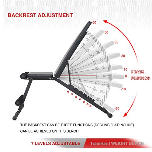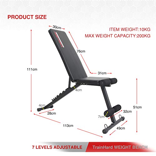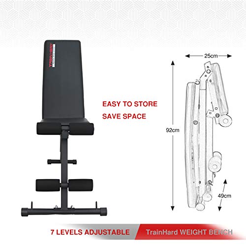 TrainHard Verstellbare Klappbare Hantelbank, Multifunktion Trainingsbank – Schrägbank – Bauchtrainer – Flachbank – Gerade/Schräg/Negativ- Geeignet für Einsteiger für Zuhause bis 200 kg Belastbar