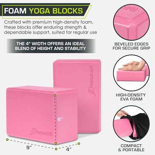 ProsourceFit Foam Yoga Blocks, High Density Eva Yoga Bricks 4”x 6” x 9” (Set of 2)