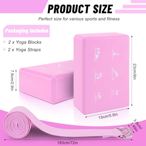 🩷【Lieferumfang】: Sie erhalten 2 Yoga Blöcke mit hoher Dichte und 2 rose Yoga-Stretchgurte. Sie können Ihnen helfen, Ihre Haltung während des Yoga anzupassen, Ihren Körper bei schwierigen Bewegungen zu unterstützen und Muskelbelastungen zu vermeiden.