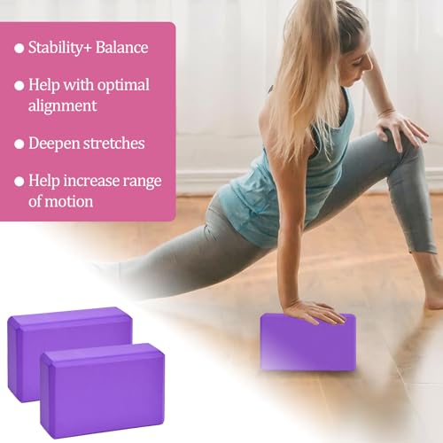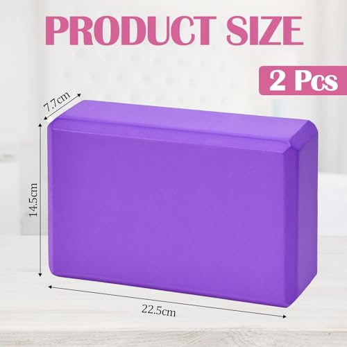 Zuxbolf Yoga Blöcke 2er Set Yogaklötze aus EVA Schaumstoff Lila Pilates Block Rutschfest & Leicht Schaumstoffblock für Yoga Pilates Fitness (22,5×14,5×7,7cm)