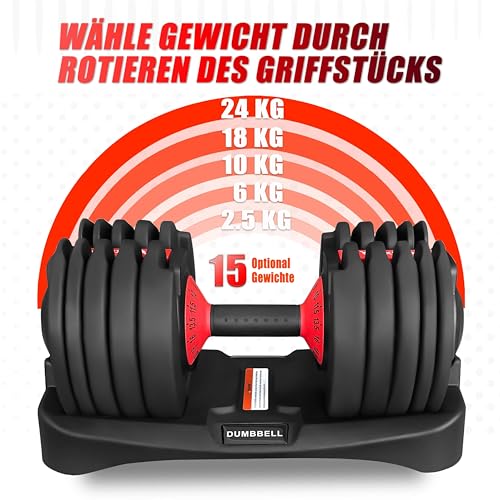 💪【Eine Hantel, 15 verschiedene Gewichte】Die innovative verstellbare intelligente Hantel spart Ihnen Platz und Geld und deckt 15 Gewichte zwischen 2.5-24kg ab. Inkremente sind: 2.5-24kg. 2.5kg, 3.5kg, 4.5kg, 5.5kg, 6.5kg,8kg, 9kg, 10kg, 11.5kg, 13.5kg, 16kg, 18kg, 20.5kg, 22.5kg und 24kg.