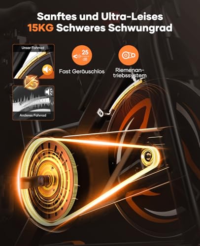 ✅【0-100% Magnetwiderstand & Leise Hometrainer Fahrrad】Magnetisches Bremssystem mit Riemenantrieb & 15 kg Schwungrad für geräuscharmes Training (