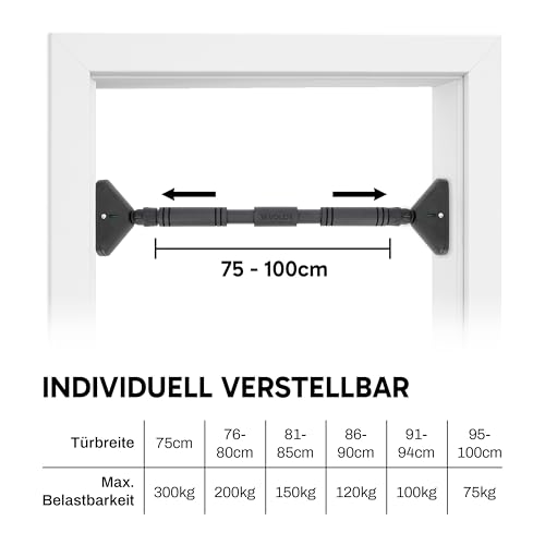 Für Türrahmen von 75–105 cm Breite: Universell einsetzbar – einfach an massive, stabile Türrahmen montieren. Nicht geeignet für hohle oder beschädigte Rahmen.