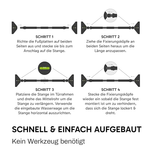 REVOLOR Klimmzugstange für Türrahmen – ohne Bohren – bis 300 kg – mit Double-Gear-Verriegelung, Wasserwaage & Anti-Rutsch-Pads – für Training zuhause