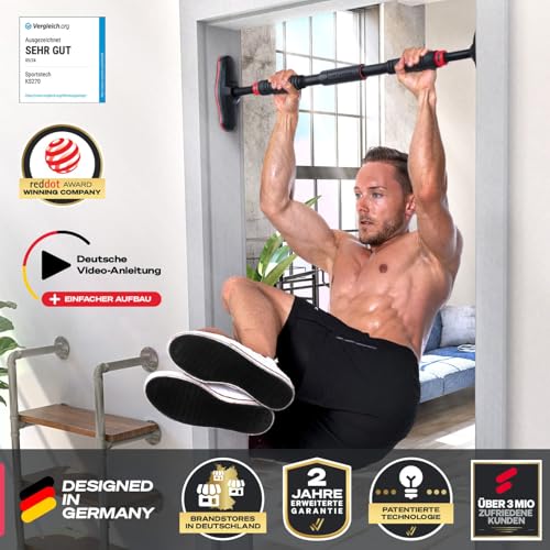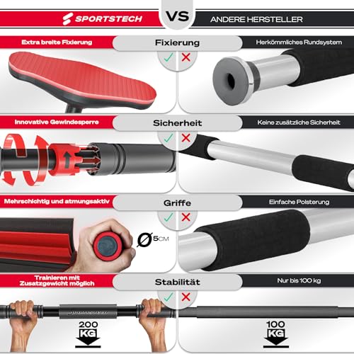 Sportstech KS260/270 Klimmzugstange Tรผrrahmen fรผr zuhause, Tragkraft bis 200 kg, Home Gym, Pull Up Bar mit Gear-Lock Funktion, Reckstange verstellbar 70-90 cm, rutschfest, ohne Schrauben, Calisthenics