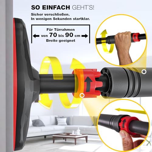 โœ… ๐’๐“๐€๐‘๐Š & ๐•๐ˆ๐„๐‹๐’๐„๐ˆ๐“๐ˆ๐† โ€“ Die Teleskopstange passt in Tรผrrahmen von 70โ€“90 cm und trรคgt bis zu 200 kg. Unterschiedliche Griffpositionen aktivieren gezielt Rรผcken, Schultern, Arme und Bauch โ€“ fรผr abwechslungsreiche Workouts.