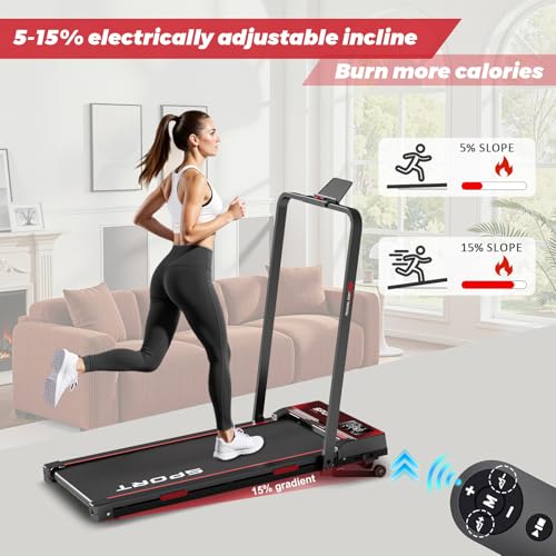 Laufband für Zuhause, Treadmill mit elektrisch Verstellbarer Steigung 15%, 1-12 km/h, Walking Pad und laufband klappbar 4 in 1 mit Fernbedienung/LED-Anzeige, Ipad/Handy-Holder.