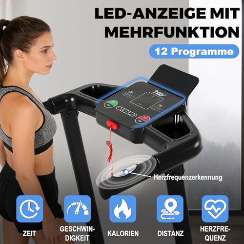 12 PROGRAMME & RUTSCHFEST – Mit 12 voreingestellten Trainingsprogrammen und einstellbarer Geschwindigkeit können Sie den Laufmodus und die Intensität leicht an Ihre Fitness und Trainingsbedürfnisse anpassen – ob Gehen, Joggen oder Laufen. Das mehrlagige, rutschfeste Laufband schont Ihre Gelenke durch reduzierte Stoßbelastung und erzeugt weniger Geräusche.