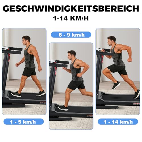 VERSTELLBARES GEFÄLLE & BIS ZU 14 KM/H – Unser Laufband bietet eine hohe Leistung bis zu 14 km/h und eignet sich für verschiedene Trainingszustände. Der Neigungswinkel des Laufbands kann manuell in 3 Stufen eingestellt werden.