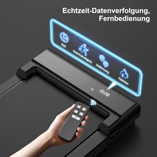 Fernbedienung und LED-Anzeige: Das Laufband ist mit einer Fernbedienung ausgestattet. Die LED-Anzeige zeigt bequem Trainingsdaten wie Geschwindigkeit, Zeit, Distanz und Kalorien an. Sie können die Geschwindigkeit während des Trainings per Fernbedienung einstellen, ohne Ihr Trainingsprogramm zu unterbrechen, was für ein verbessertes Trainingserlebnis sorgt
