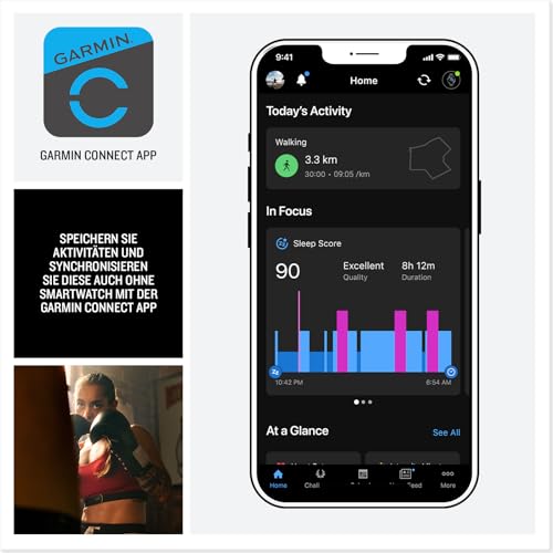 MESSWERTE: Erfasst die täglichen Messwerte, einschließlich geschätzter Schritte, Herzfrequenz, Kalorienverbrauch und mehr, und synchronisiert diese Daten direkt mit der Garmin Connect Smartphone-App