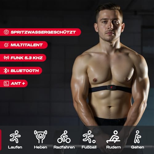 Sportstech Pulsgurt, Herzfrequenzmesser Brustgurt, Bluetooth ANT+, Fitness Tracker fรผr Laufen, Radfahren, Training, IPX4 Wasserdicht, 350 h Batterie, Kompatibel mit Sportstech Live, Wahoo, Polar