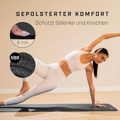 KG PHYSIO Yogamatte Rutschfest & Gepolstert – Yoga Matte mit Tragegurt, Fitnessmatte, Sportmatte Dicke 8mm, Gymnastikmatte, Gym Matte, Pilates Matte, Fitness Matte, 183x60cm