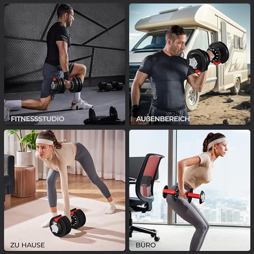 12 Gewichtsstufen: Dieses verstellbare Kurzhanteln-Set verfügt über 12 verschiedene Gewichtsstufen: 3/6/8/9/11/13/15/17/18/19/21/24. Das Design ermöglicht ein gezieltes und schrittweises Training für die verschiedenen Übungen