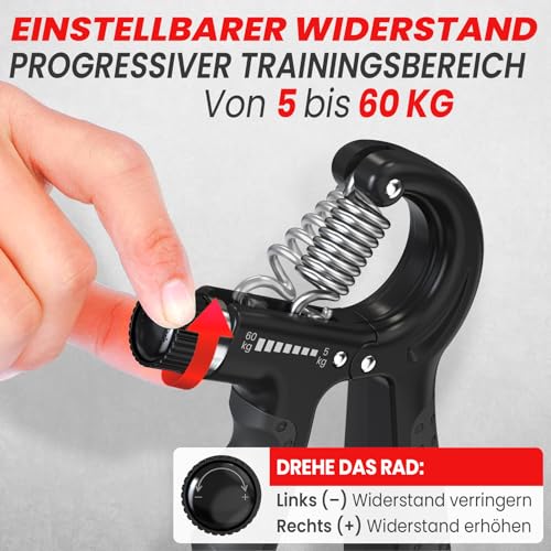 Verstellbarer Gegenwehr von 5 bis 60 kg – Die Handtrainer passen sich deinem Trainingsniveau an ideal anstelle Griffkrafttraining Unterarmtraining und Handtraining beim Sport oder Fitnesstraining