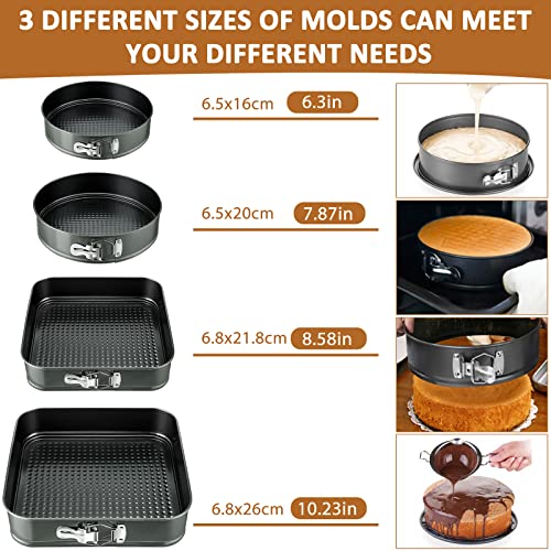NCKIHRKK 4er-Set Springform, 16/20cm Kuchenform Rund und 22/26 Kuchenform Eckig, Carbonstahl Antihaftbeschichtete Backform Rund Rechteckig mit Abnehmbarem Boden, Grau