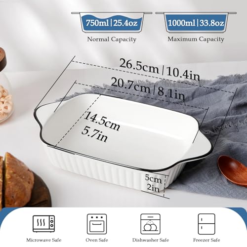 【1L Rechteckige Backform】1L kleine Keramikschalen zum Backen, geeignet für Lasagne, Fleisch, Gemüse etc, perfekt für den täglichen Gebrauch
