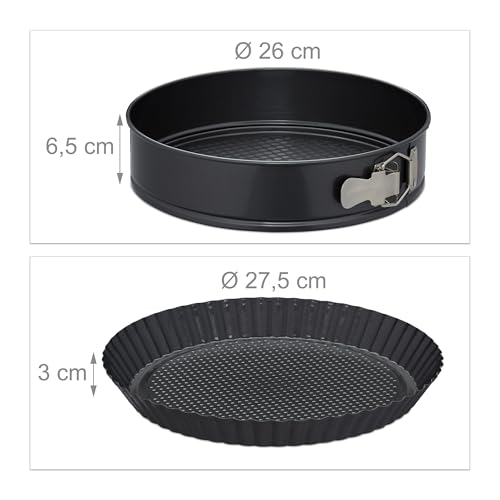 Relaxdays Backform Set 5-teilig, 26er Springform mit Rohrboden, Kastenform, Obstbodenform, Backpinsel, Stahl, anthrazit