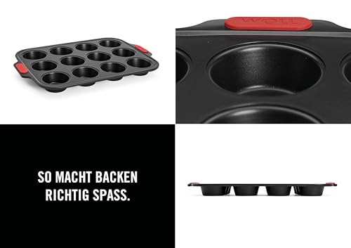 Woll Bakeware Muffinform für 12 Stück, mit hitzebeständigen Silikongriffen bis 230°C, PFAS-frei, zweilagige Antihaftbeschichtung, aluminisierter Stahl, schwarz