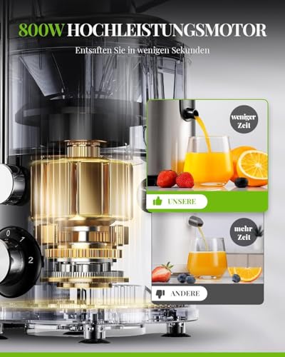 Hochgeschwindigkeits-Entsaften: Unser entsafter mit 800Watt motor entsaftet obst und gemüse in sekundenschnelle. Integrieren sie frische säfte in Ihren alltag und starten sie ganz einfach in einen gesünderen lebensstil.