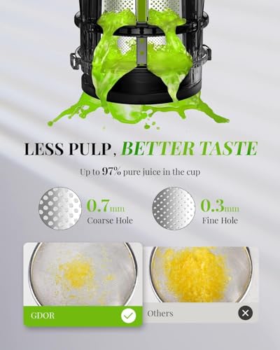 [Höhere Saftreinheit]: Der Kau-Entsafter mit Doppelfiltrationstechnologie erzeugt Säfte mit einer Reinheit von bis zu 97 %. Dies führt zu einem reineren Saft mit einer glatteren Textur und frei von Fruchtfleischpartikeln und Schaum, was den Saft köstlicher macht.