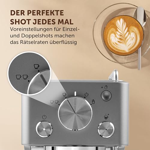 JEDES MAL DER PERFEKTE ESPRESSO: Voreinstellungen für einfache und doppelte Espressos liefern jedes Mal genau die richtige Menge Kaffee