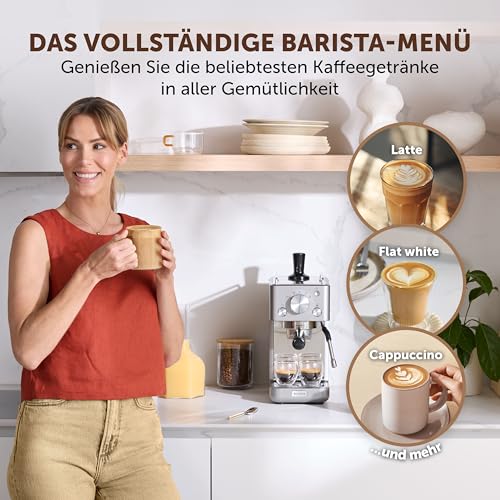 HÖCHSTER ESPRESSOGESCHMACK: Der von Baristas in Großbritannien meisterhaft entwickelte 58 mm große Siebträger mit 30 % mehr Kapazität lässt das Wasser auf eine größere Fläche von Kaffeemehl einwirken, um ein vollmundiges Kaffeeerlebnis zu bieten