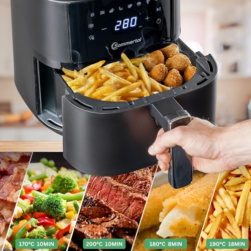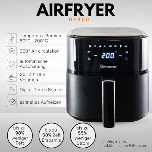 Sommertal HF400 – Kompakter Airfryer Heißluftfritteuse 4L, XXL Power mit 1500W, Digital & Spülmaschinenfest, 8 Programme, BPA-frei, Air Fryer klein für 1–4 Personen
