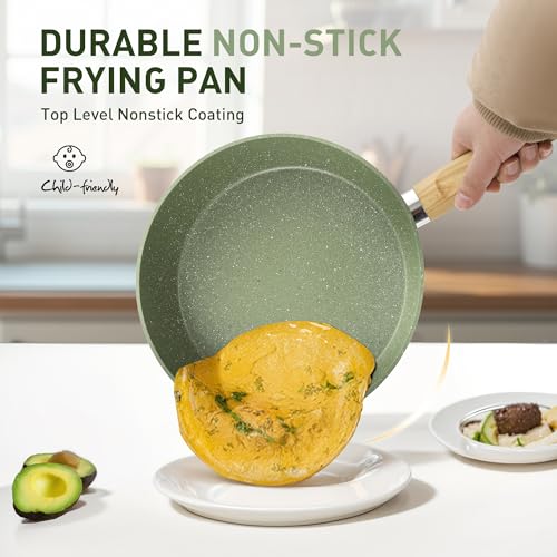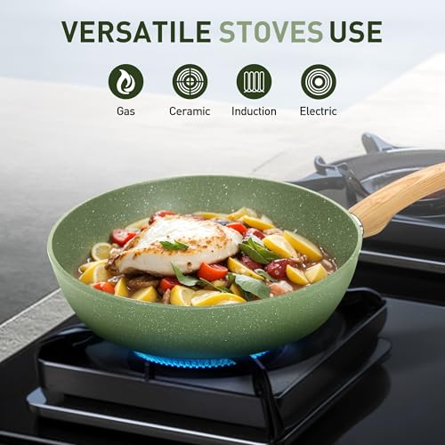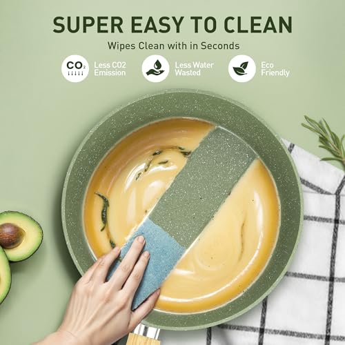 Gesund und Ungiftig: Granit Antihaftbeschichtung ist langlebig und bleibt 100% frei von PFOA, PFOS,benötigt sehr wenig Öl zum Kochen, perfekt für gesundes.Nicht klebrig und leicht zu reinigen