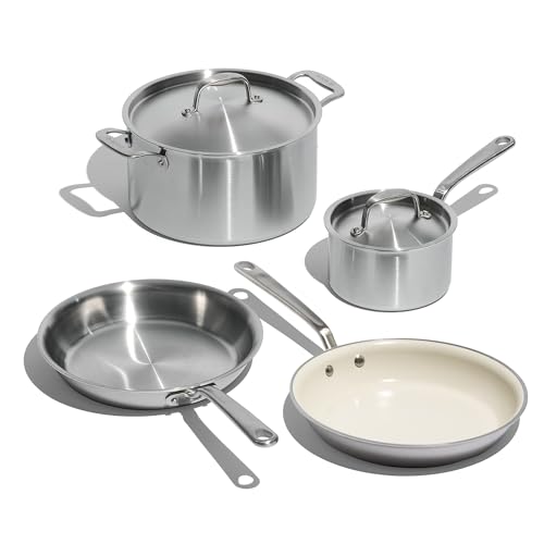 Enthält: 25,4 cm Keramik-Antihaft-Pfanne, 25,4 cm Edelstahl-Bratpfanne, 8 QT Suppentopf mit Deckel, 2 QT Stielkasserolle mit Deckel
