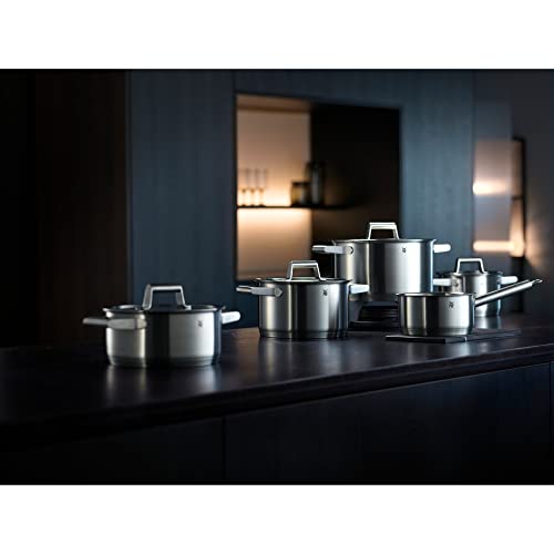 WMF Comfort Line Topfset Induktion 5-teilig, Kochtopf Set mit Glasdeckel, Cromargan Edelstahl mattiert, Skalierung, Induktions Töpfe Set stapelbar, unbeschichtet