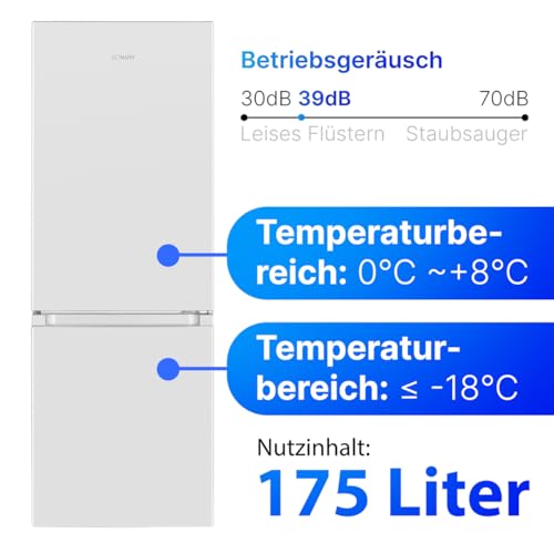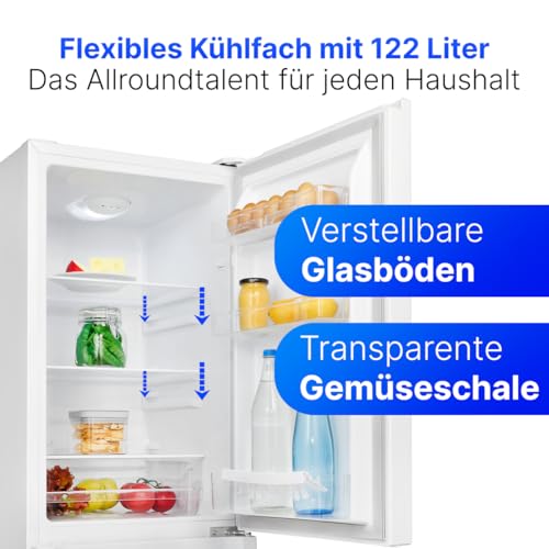 Bomann® Kühlschrank mit Gefrierfach | Energieklasse E | 143cm | Kühl Gefrierkombination leise 39 dB | 3 Ablagen & 3 Schubladen | Türanschlag wechselbar | 175L Kühlgefrierkombi | KG 320.2 weiß