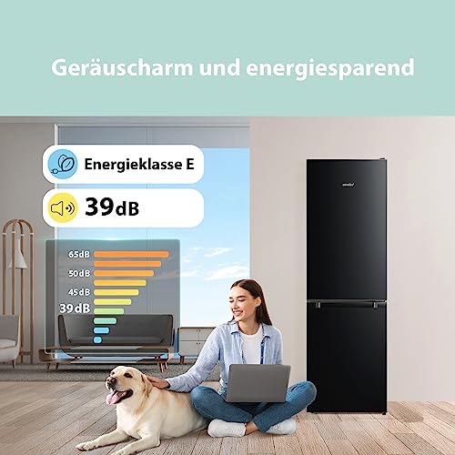 Comfee RCB169DK2(E) Kühl-/Gefrierkombination/150 cm Höhe/Low Frost/Einstellbare Kühlschranktemperatur/LED-Licht/195 kWh/Jahr/115L Kühlteil/59L Gefrierteil/Schwarz