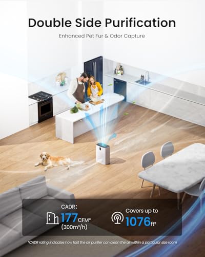 Doppelte Ansaugung für optimierte Filterung: Mit doppelseitigem Lufteinlass und mehrschichtigem HEPA-Filtersystem reinigt der Luftreiniger die Luft von beiden Seiten gleichzeitig und verbessert spürbar die Reinigungsleistung. Das intelligente Display und die App überwachen die Filterlebensdauer des Luftreinigers in Echtzeit und erinnern rechtzeitig an den Filterwechsel. Ersatzfilter (Upgrade: B0BMDYDXFK; Original: B0C3GWNR29) sind bei Amazon erhältlich und leicht auszutauschen
