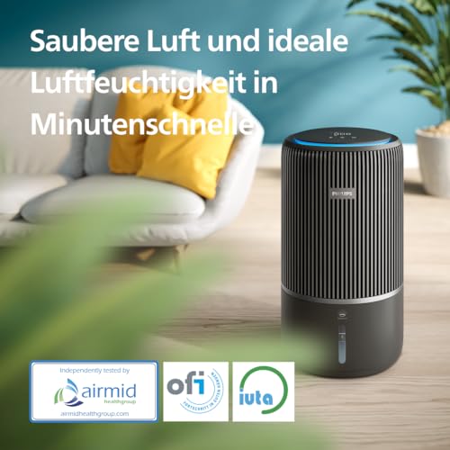 Philips 3400 Serie 2-in-1-Luftreiniger und -Luftbefeuchter, HEPA NanoProtect + Aktivkohlefilter, hygienische Luftbefeuchtung mit 650ml/h, CADR 300m³/h für 78 m² (AC3421/13)