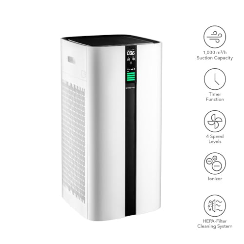 TROTEC Luftreiniger AirgoClean 350 E – HEPA Filter für Allergiker – Räume bis 120 m²/300 m³, Gebläsestufen 4, entfernt 99,97% aller Partikel, Pollen, Staub