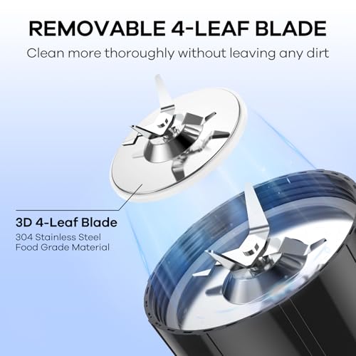 【Leicht zu Reinigen】Die vierblättrigen Klingen sind abwaschbar. Der Tragbecher und der Deckel sind spülmaschinengeeignet – für eine schnelle und mühelose Reinigung