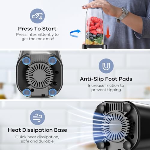 【Mehr Sicherheit】Ganiza Mixer startet nur bei korrekter Montage aller Teile. Lüfter an Unter- und Rückseite leiten die Wärme schnell ab. Vier rutschfeste Silikonpads sorgen für Stabilität während des Betriebs