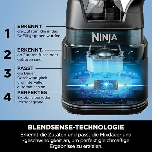 BLENDSENSE-TECHNOLOGIE: Erkennt die Zutaten, die Portionsgröße und das Eis und passt dann automatisch die Geschwindigkeit, die Zeit und den Puls für ein perfektes Ergebnis an
