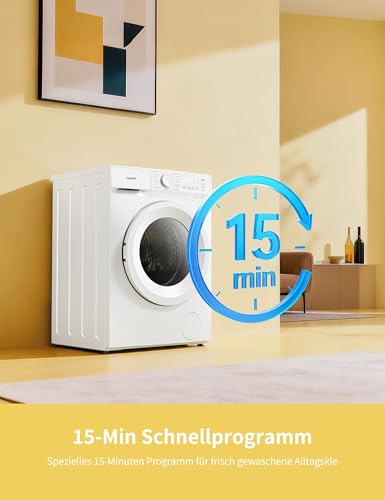 Comfee Waschmaschine 8kg, Washing machine mit Tierhaar-Programm & Dampffunktion,16 Programme,Energy Efficiency Class A-10%,Nachlegefunktion, Leise & Energiesparend, CF08EWP05W, Weiß