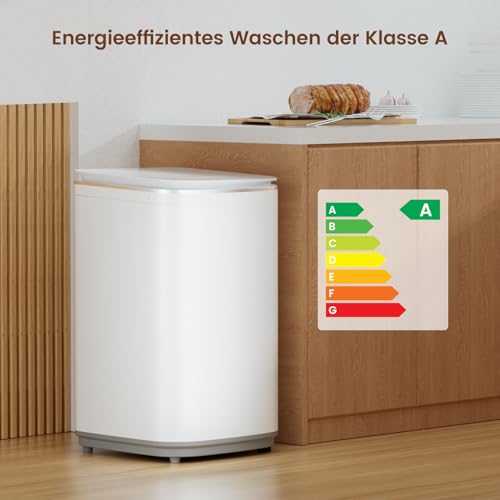 【Hochwertige Materialien & Elegantes Design】 Die HAVA Tragbare Waschmaschine verfügt über eine Edelstahl-Trommel für hervorragende Langlebigkeit und leichte Reinigung. Der Deckel aus gehärtetem Glas mit Soft-Close-Mechanismus sorgt für ein sanftes Schließen. Die berührungsempfindliche Steuerung mit LED-Display unterstreicht die moderne Ästhetik des Geräts.